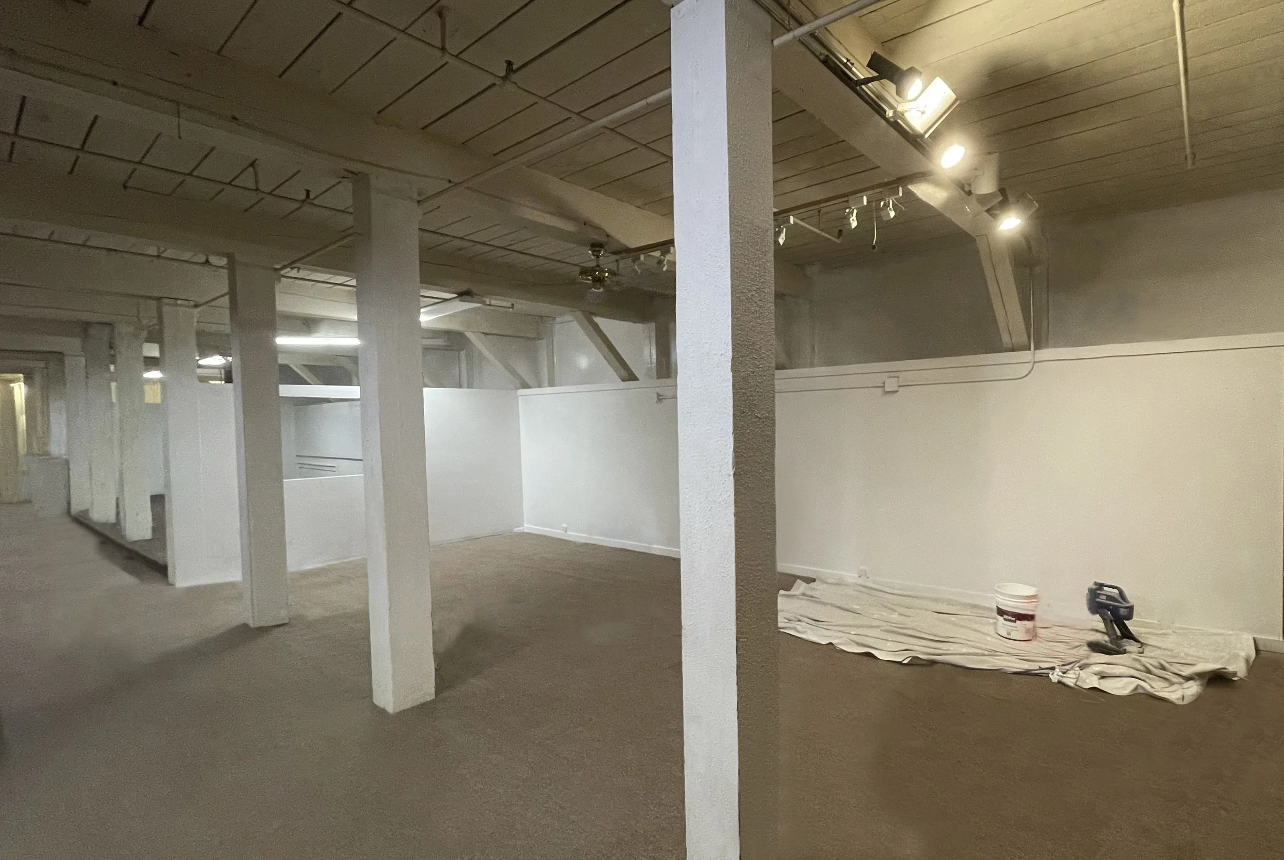 floor 2 . . . available soon, 10K square feet of industrial workspace with 11’ ceilings. Loading dock.